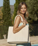 100% Cotton canvas, (12oz/yd²). Structured base and side panels. Premium heavyweight fabric. Internal slip pocket. Cotton carry handles. Can be carried by hand or over the shoulder. TearAway label for easy rebranding.