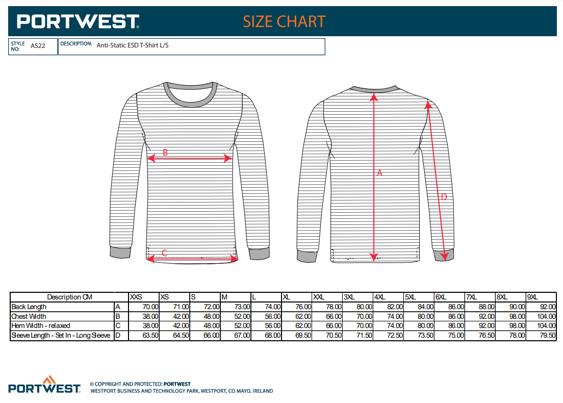 Portwest AS22 Anti-Static ESD T-Shirt L/S AS22